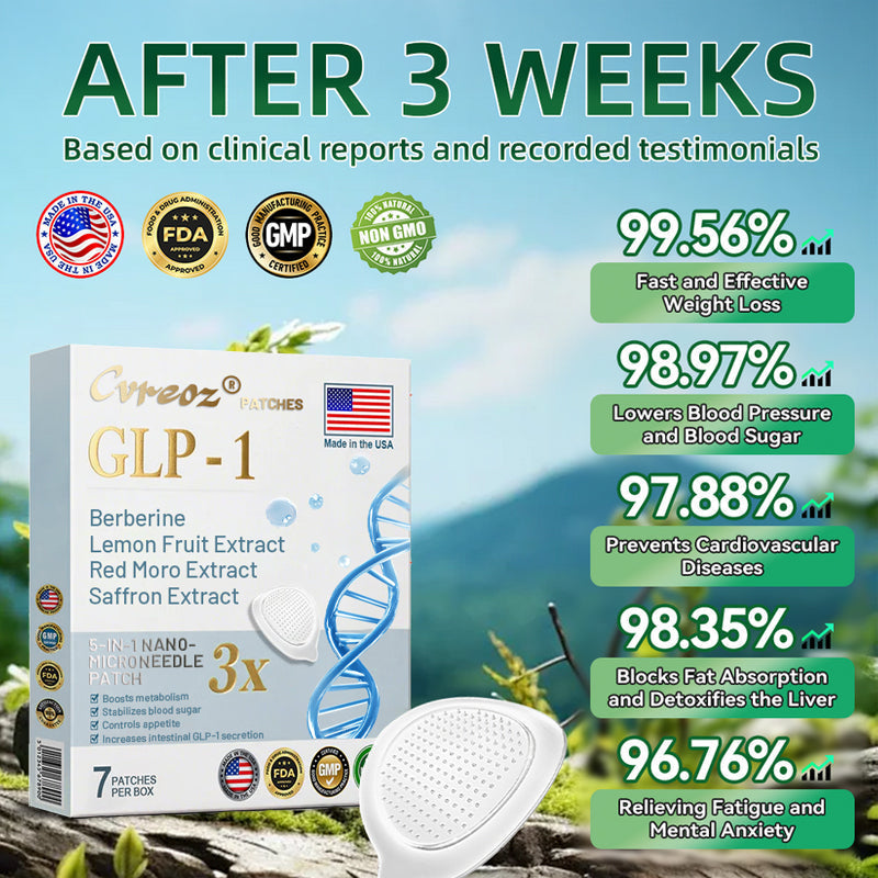Cvreoz® GLP-1 five-in-one NANO MICRONEEDLE Slimming & Health PATCHES combined GLP-1 with four clinically studied, all-natural extracts—delivered through dissolvable nanoneedles—to help your body repair itself and accelerate weight management.