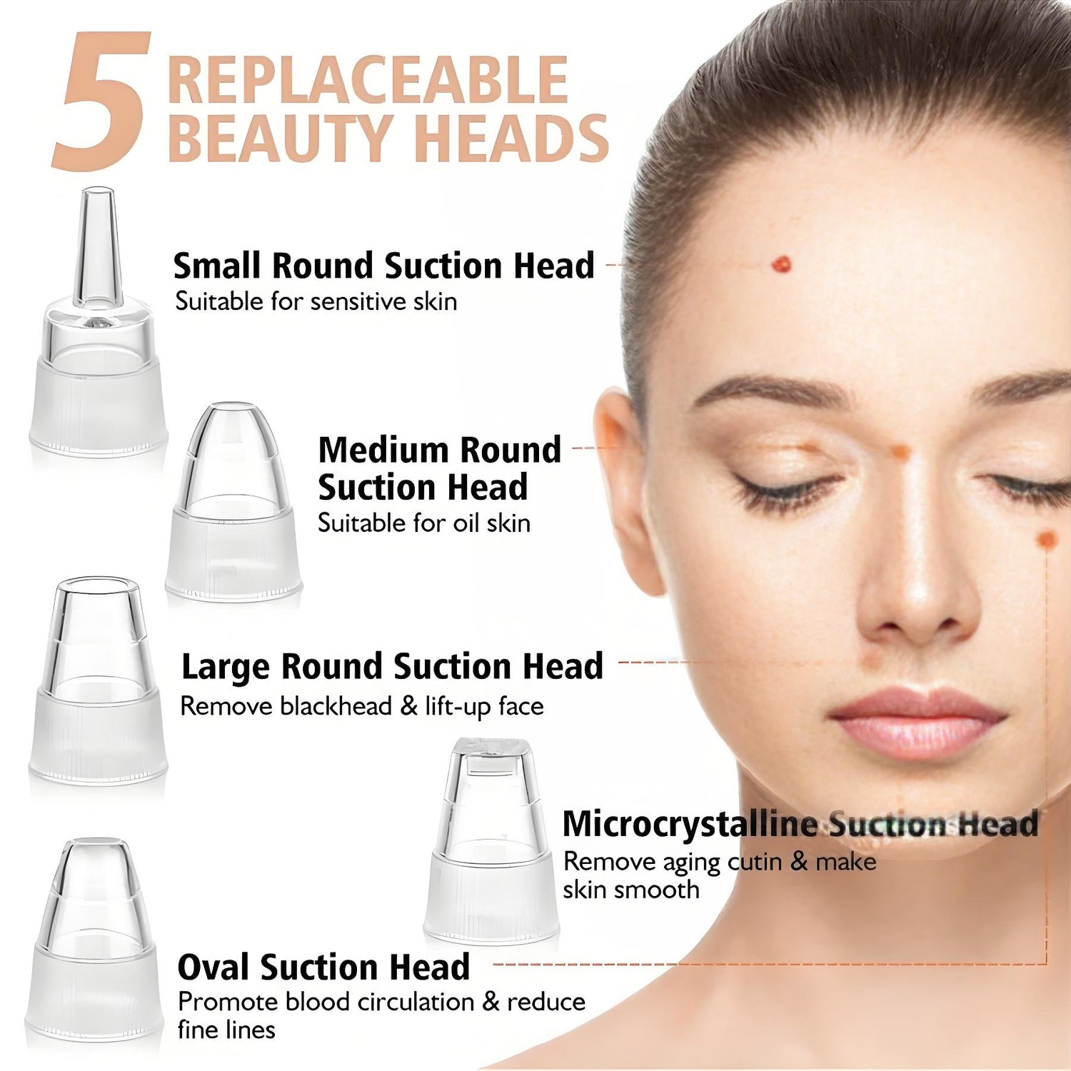 Our VacuGlow Blackhead Remover comes with 5 interchangeable suction heads, each designed to tackle different skin concerns that fit for you!