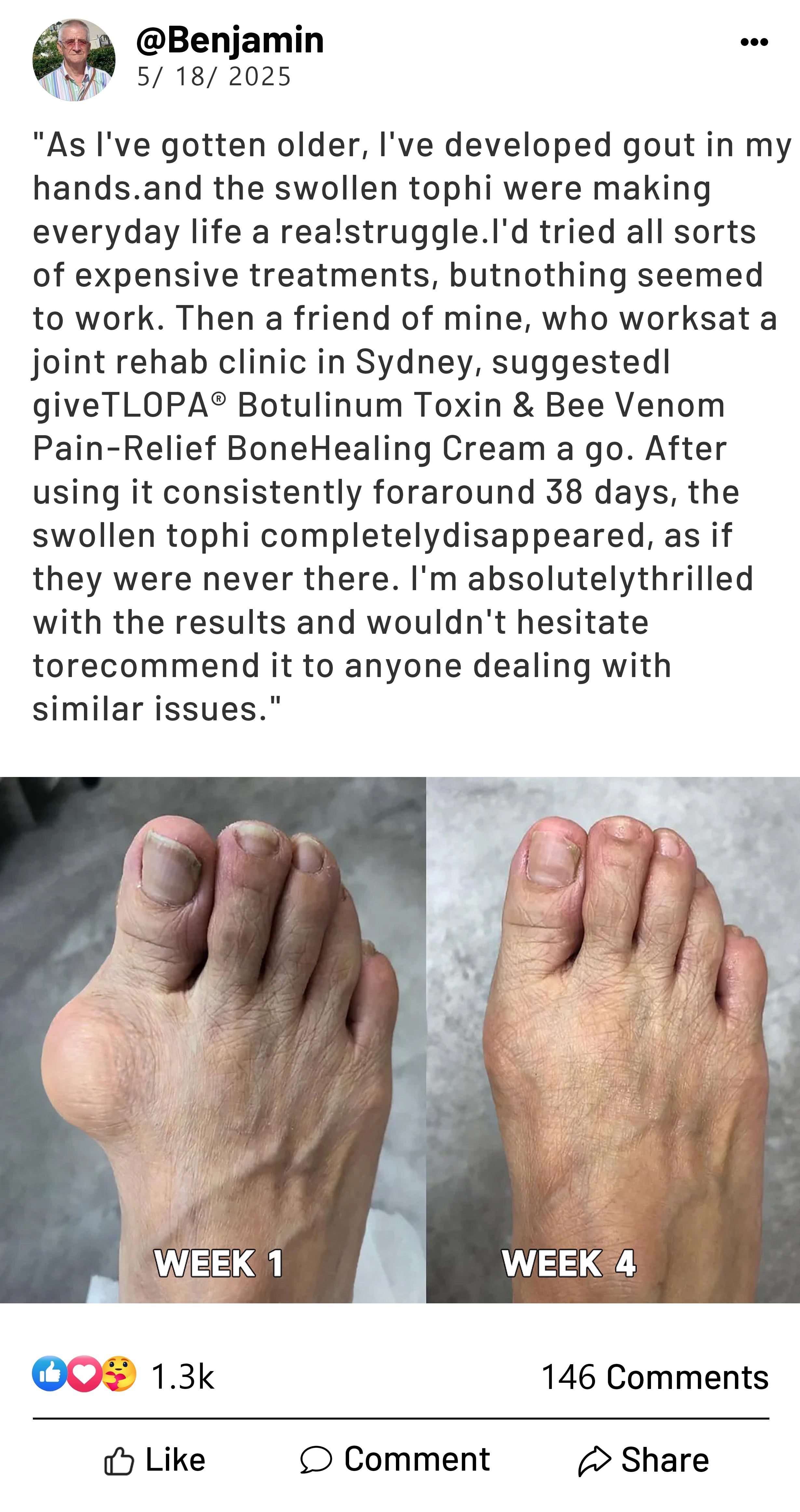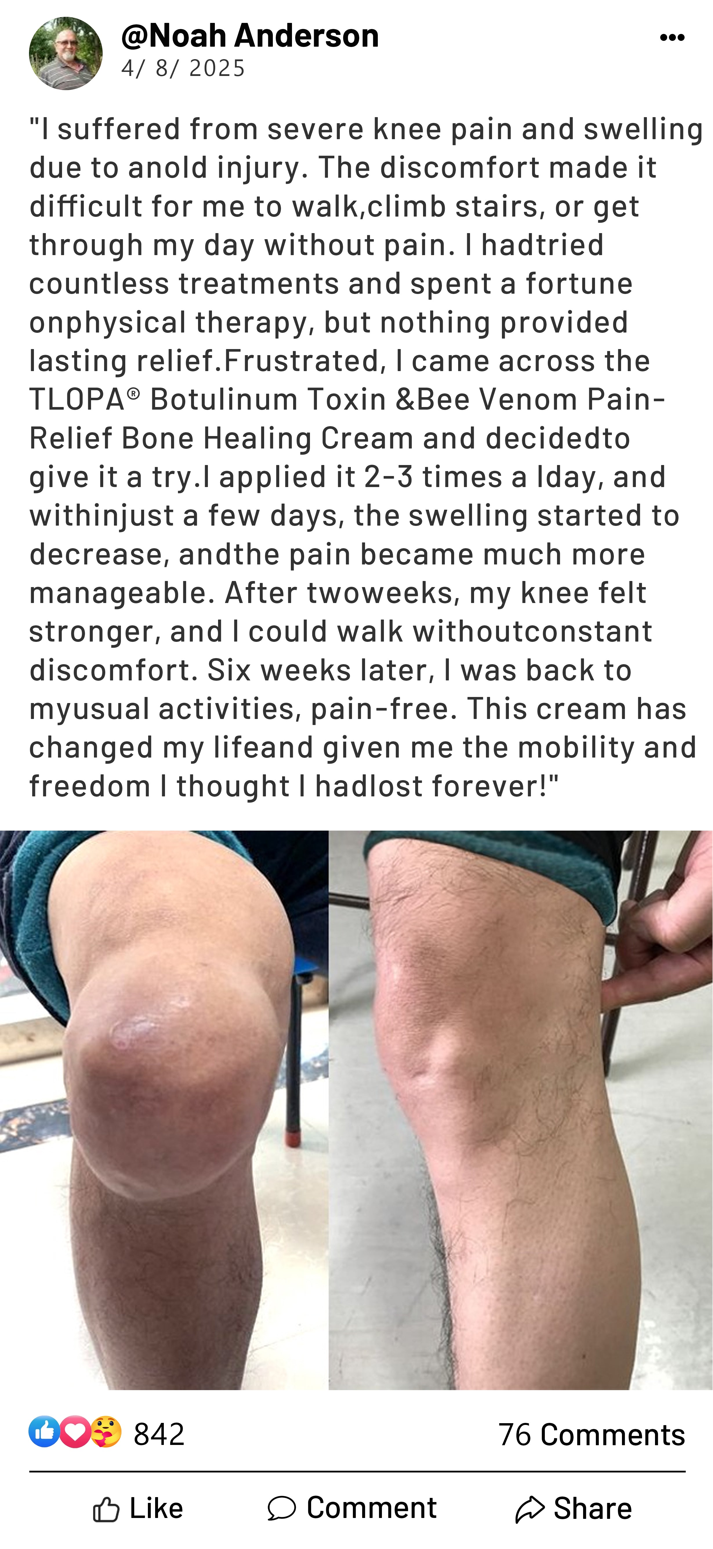 TLOPA® cream contains natural bee venom, which effectively improves joint flexibility. The active compound “bee venom peptide” deeply penetrates the joints, alleviating stiffness and discomfort caused by inflammation and helping to restore joint mobility. Over time, the anti-inflammatory effects of bee venom continue to promote synovial fluid production, providing better lubrication for the joints, reducing friction, and significantly improving joint flexibility within 7 days.